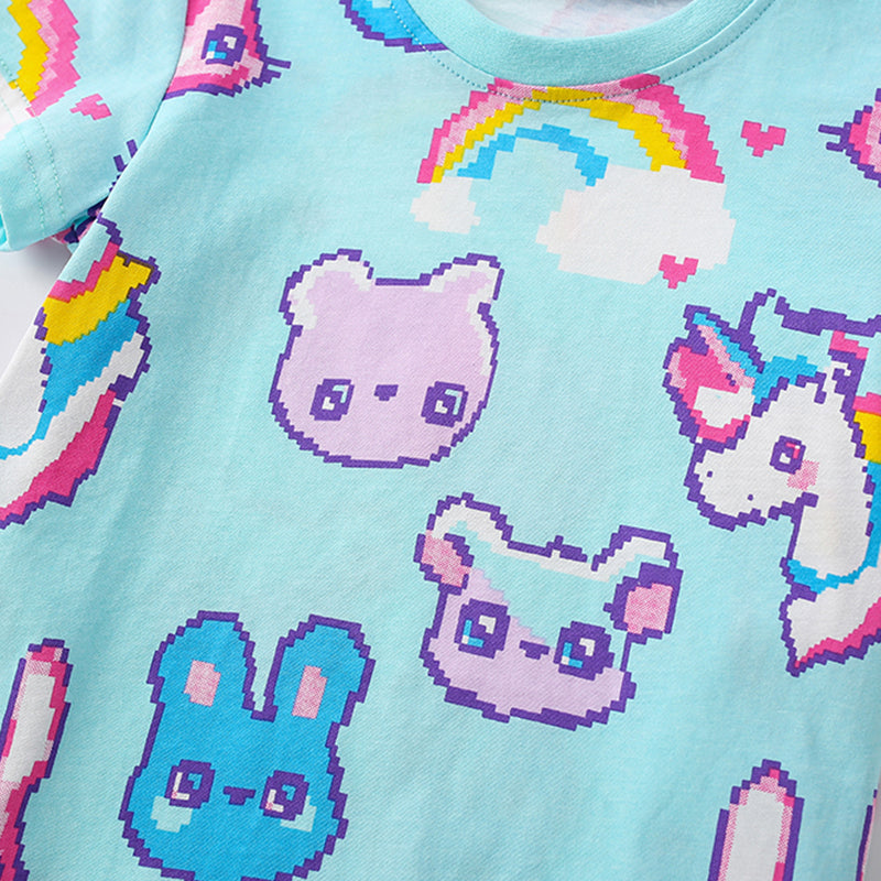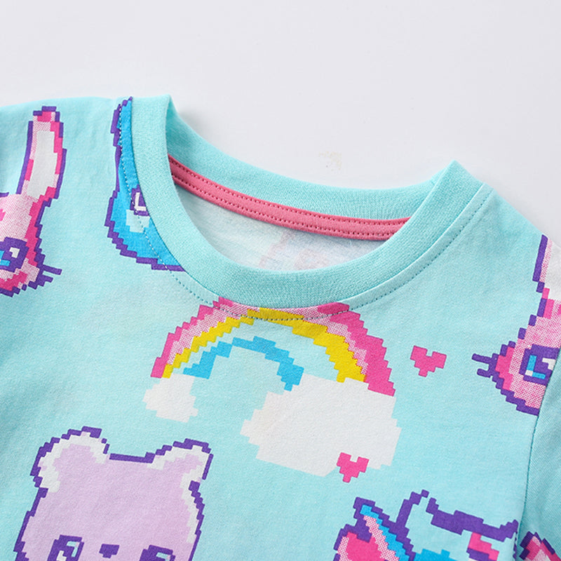 Dress up your little girl for summer with this cute and stylish two-piece outfit set from Malwee. The set includes a blue T-shirt with a rainbow character design and short sleeves, perfect for casual wear or travel. The matching leggings are also included, both in size to fit your toddler perfectly. Made from 100% cotton, this outfit is comfortable and breathable, ensuring your little one stays cool during the warm summer months. The set features a holiday and London theme, making it a great addition to your child's summer wardrobe. Get your hands on this adorable outfit set today and give your little girl a stylish and comfortable look.